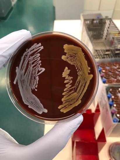 Image credit : Donskey et al, NEJM. Hand contaminated with MRSA after examining an abdomen (A), and after use of ABHR (B).